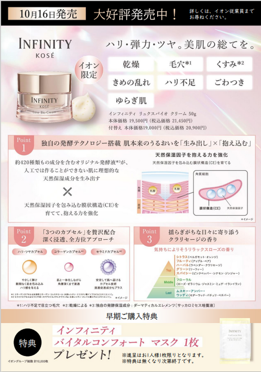 10月16日にKOSE「インフィニティ」から