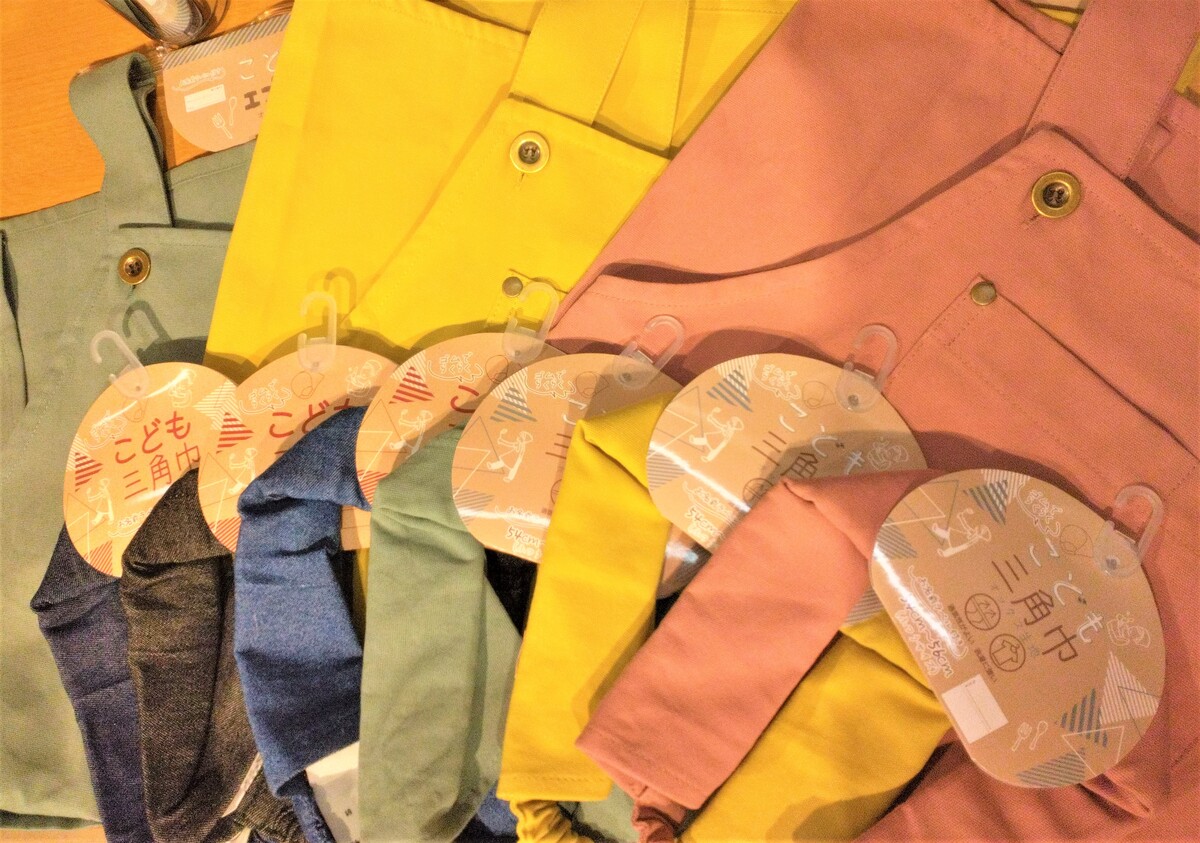 巾着付き・三角巾セットのエプロンや