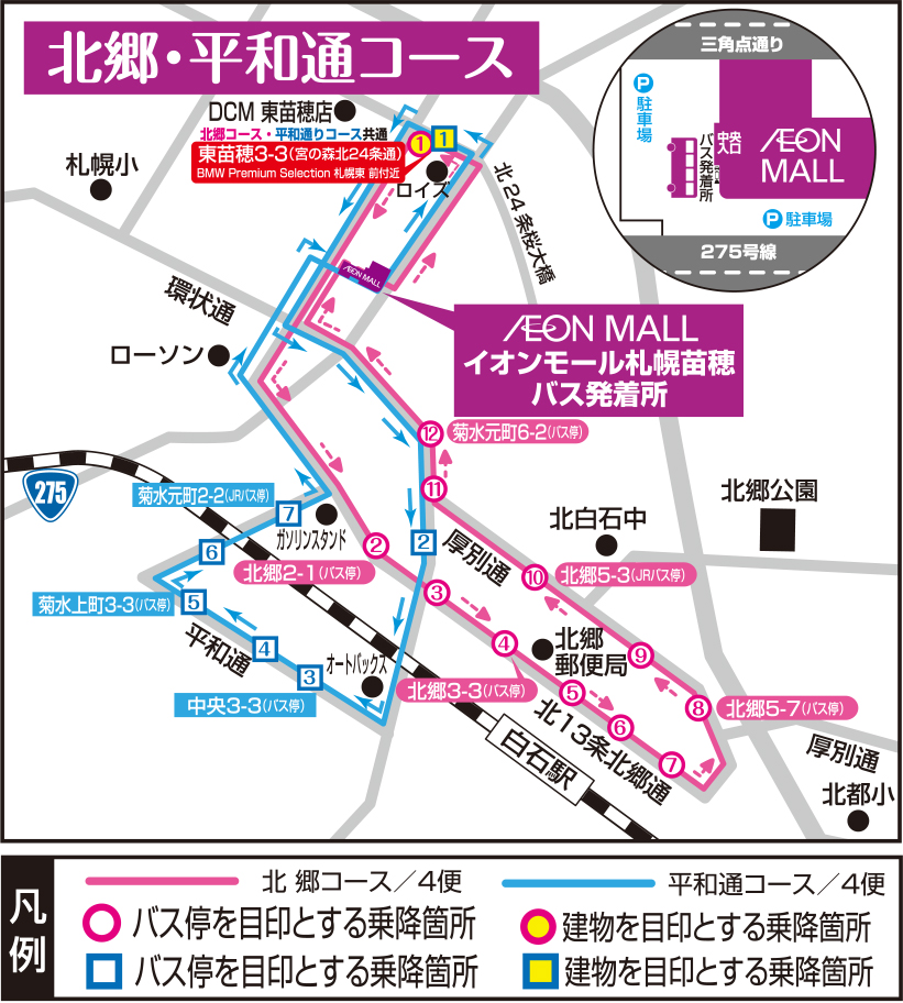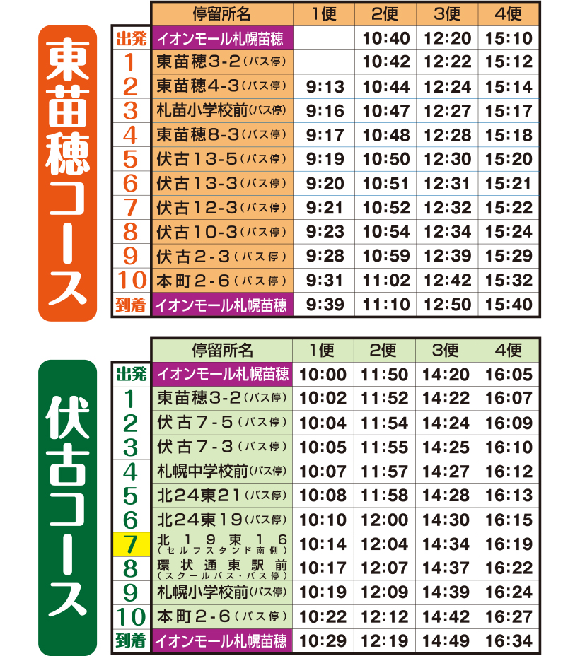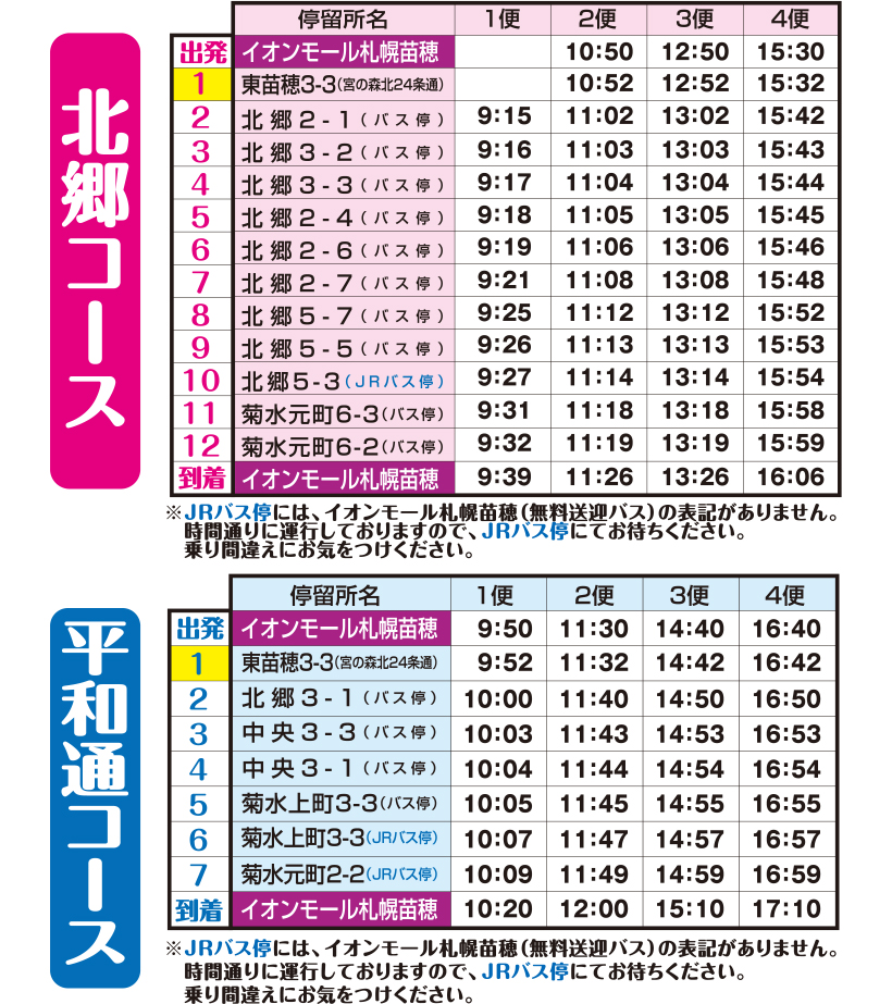 | その他 | 無料送迎バス専用のバス停はございませんので各停留所付近でお待ち下さい。 |