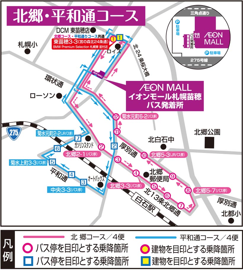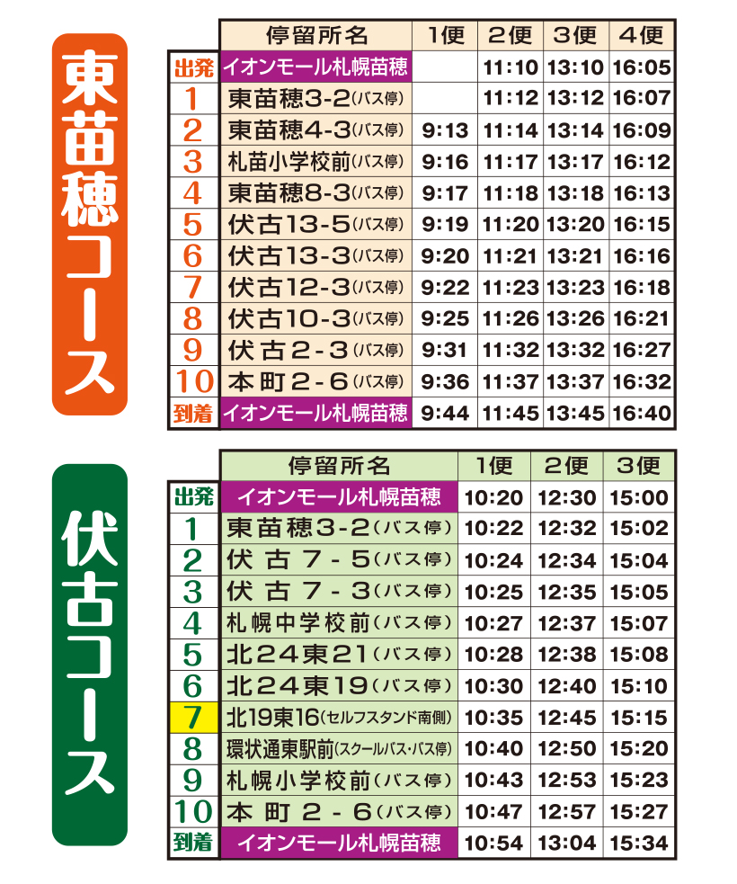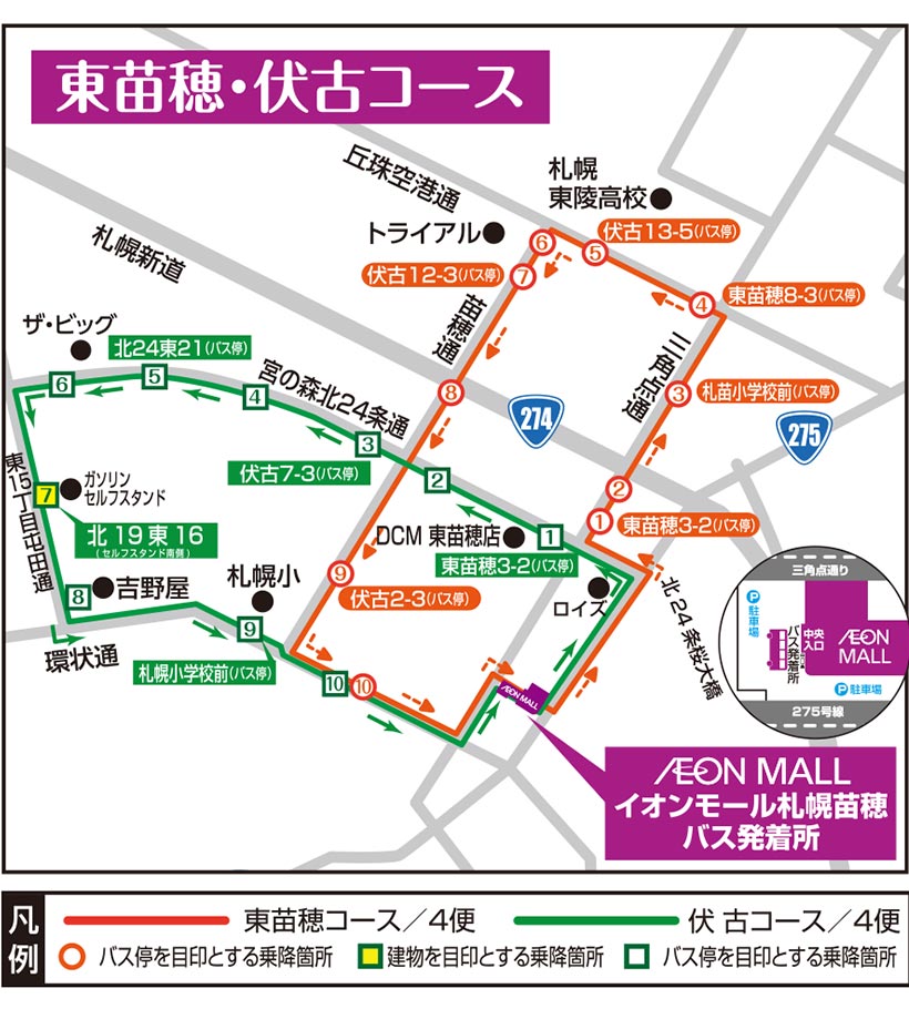 コース:伏古コース(地下鉄東豊線 環状通東駅から乗り継げるコース)