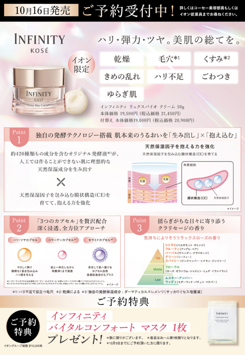 \絶賛ご予約承り中/ コーセー『インフィニティ リュクスバイオクリーム』イオン限定