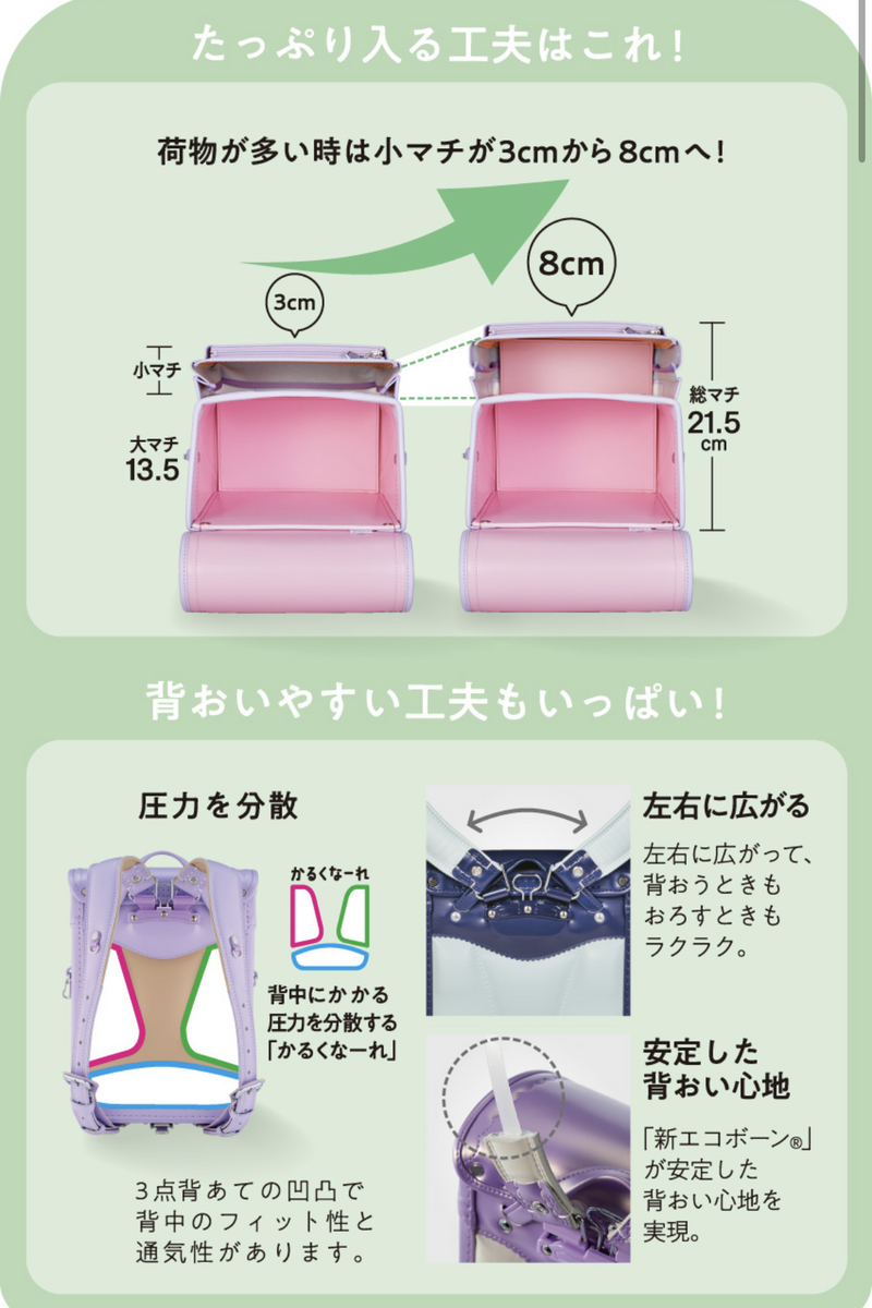小マチが拡縮できるので高学年になってもしっかりしまえる優等生です✨