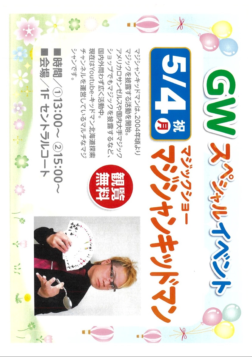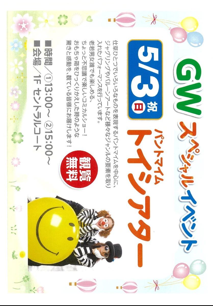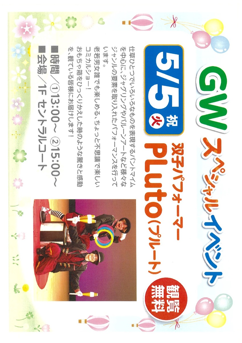 「1階 セントラルコート」にてフォーマンスショーを開催します!