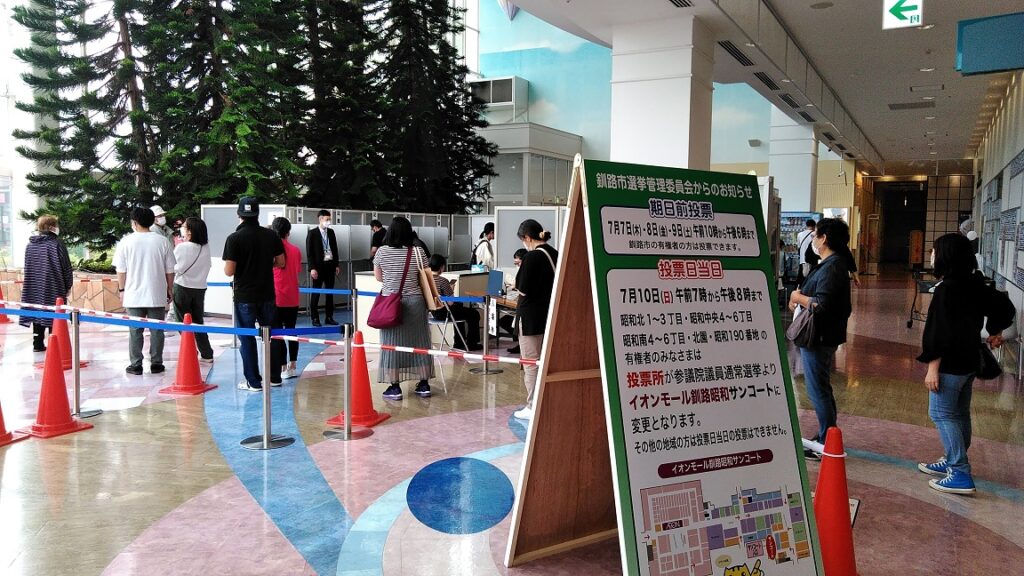 当社は、7月10日(日)に実施された第26回参議院議員通常選挙において、イオン札幌桑園ショッピングセンター、イオンモール旭川西、イオンモール苫小牧、イオン登別店、イオン湯川店、イオン上磯店、イオン釧路店、イオンモール釧路昭和、イオン紋別店の9店舗に「期日前投票所」を設置しました。イオンモール釧路昭和、イオン紋別店は初めての設置となります。また、イオン湯川店とイオンモール釧路昭和では「当日投票所」も設置しました。お客さまからは、「お買物も一緒にできて便利」「期日前投票がしやすくなった」と大変ご好評いただきました。