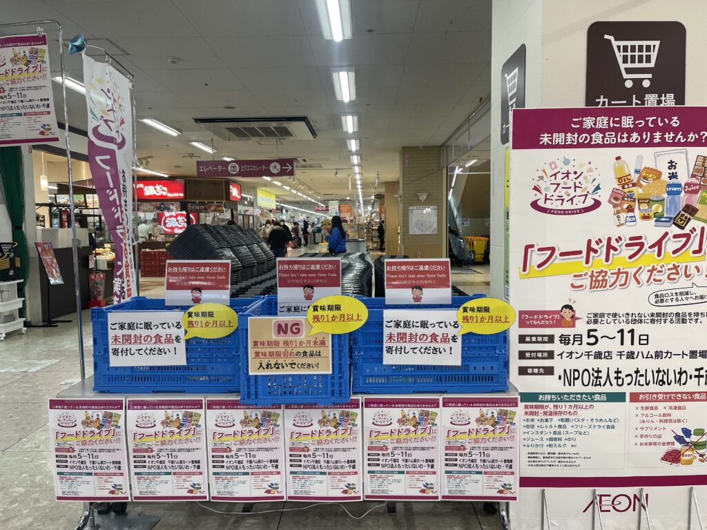 2月5日(月)より、イオン千歳店で「フードドライブ」を開始しました。フードドライブは「ご家庭で消費されずに残っている未開封かつ賞味期限内の加工食品」を店舗にお持ちいただき、その後必要とされている団体にお渡しする取り組みです。食品廃棄物削減に関する理解促進と活動への協力推進を目的に実施しており、2月5日(月)~11日(日)の期間で実施しました。今後も毎月5日~11日に定例で行います。イオン千歳店で回収した食品は、千歳市よりご紹介いただいたフードバンク事業を行う「NPO法人もったいないわ・千歳」へ寄贈し、福祉施設や子ども食堂など必要とされている方々へ届けられます。