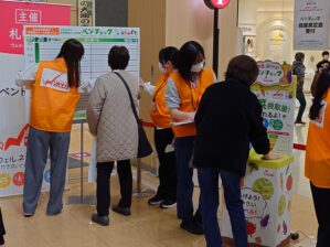 10月25日(土)・26日(日)の2日間、イオンモール札幌発寒にて「さっぽろウェルネスイベント」を開催しました。このイベントは、昨年当社と札幌市が締結した、札幌市民の「ウェルネス(健康寿命延伸)」の推進に向けた「さっぽろウェルネスパートナー協定」に基づくもので、今年度3回目の開催となります。会場ではお取引先さま企業による健康状態をチェックするイベントやパラスポーツ「ボッチャ」の体験会を実施したほか、館内設置のウォーキングコースを活用したアプリによるスタンプラリーも開催し、のべ3,665名のお客さまが参加しました。なお、今後も札幌市内のイオンモールにて、さっぽろウェルネスイベントを開催予定です。
