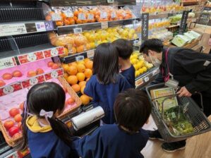 11月5日(水)に余市町内のイオン余市店において、園児の皆さまに野菜や果物の知識と理解を深めてもらうため、食育体験学習「5 A DAY(ファイブ・ア・デイ) たべるのおはなし教室」を開催しました。この教室では、公益社団法人 北海道栄養士会に所属する5 A DAY食育インストラクターが講師となり、スーパーマーケットの農産売場などを舞台に、野菜や果物を多く取り入れたバランスの良い食事の重要性や、それらに含まれる栄養について、クイズ形式で学ぶことができます。店舗近隣の幼稚園児26名が参加し、これまでに4,262名の子どもたちが野菜や果物の大切さについて学習しました。