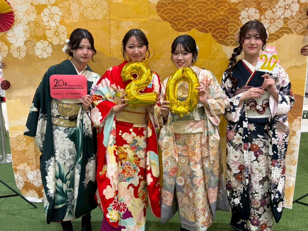 1月11日(日)、イオンモール札幌平岡ならびにイオン札幌手稲駅前ショッピングセンターにて、二十歳を迎える皆さまをお祝いするイベントを開催しました。2022年よりイオンモール札幌平岡で実施していた本企画は、成人式の思い出づくりと地域交流の場として大変ご好評をいただき、今年からイオン札幌手稲駅前ショッピングセンターでも開催することとなりました。