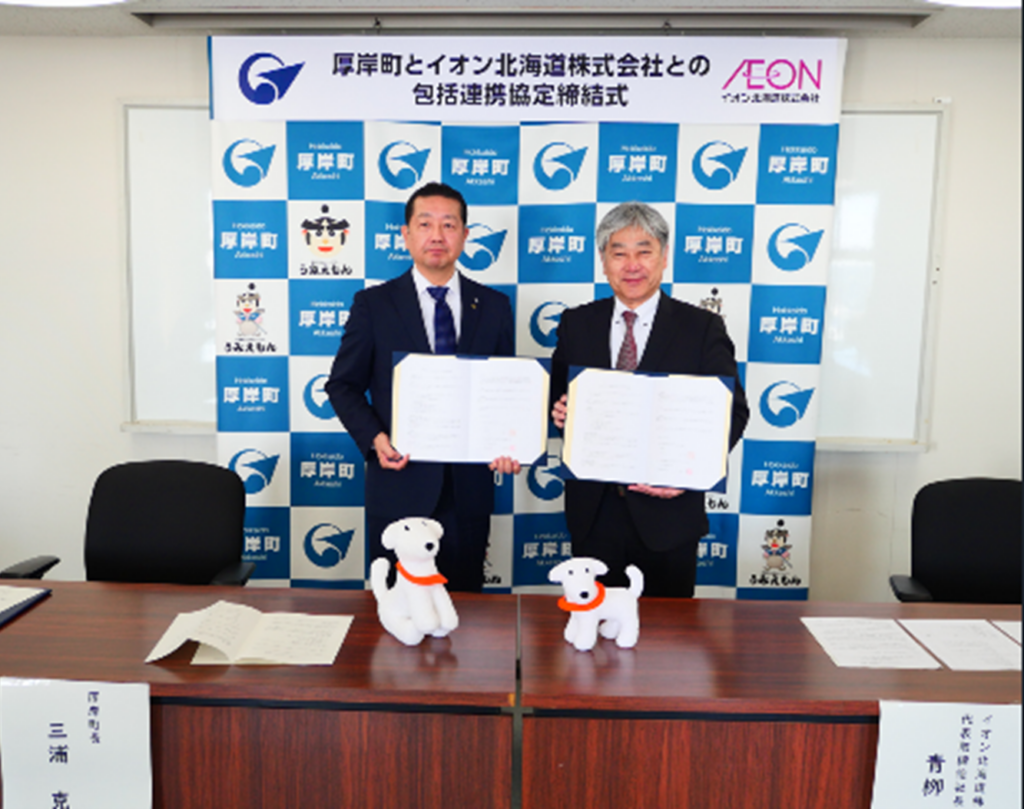 協定に基づく取り組みの一例として、厚岸町産水産物や観光プロモーション、北海道遺産「蝦夷三官寺」厚岸国泰寺の周知協力、イオンチアーズクラブを通じた子どもたちへの環境学習機会の提供、母子手帳発行時の「子育てクーポン」の配布、イオン厚岸店内への「厚岸町ご案内ボードの設置」など、さまざまな取り組みを推進してまいります。