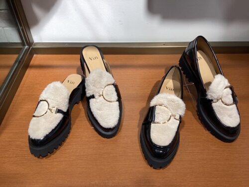 ファー素材と上品なゴールドのビットモチーフがシーズンムードが高まるローファー