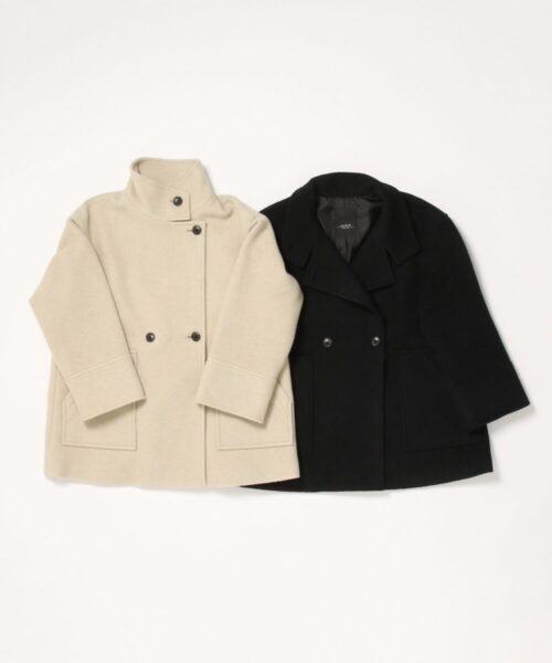 厚みがありソフトな風合いのウールライクニット生地を使用したスタンドカラーコート。