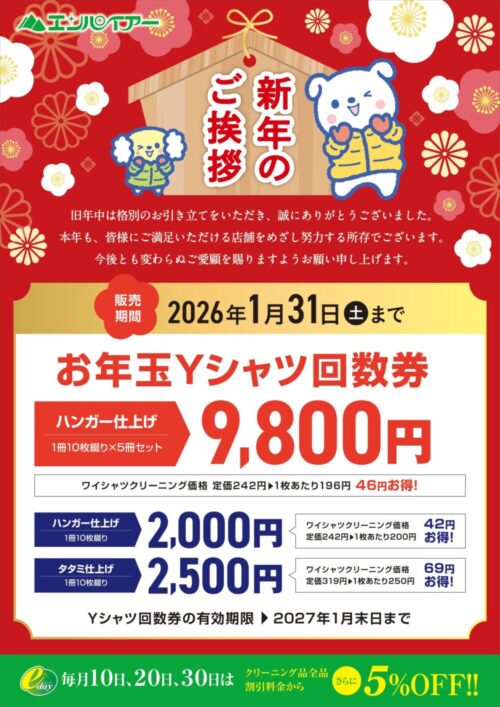 Yシャツ回数券の有効期限⇒2027年1月末日まで