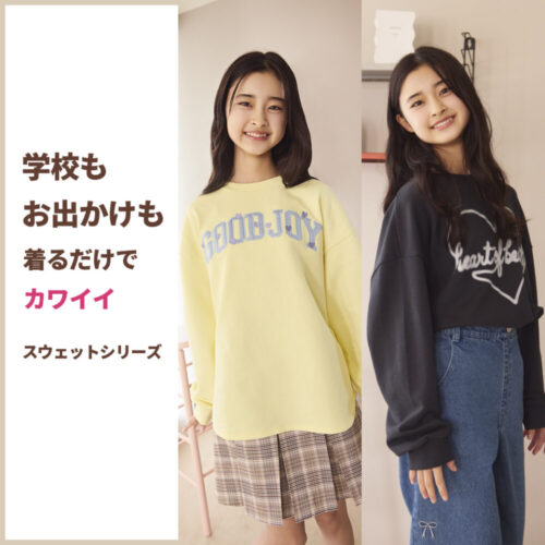 キッズからは綿100%で着心地抜群!学校でも休日でも着回しの良いスウェット各種(1,490円(税込)~)
